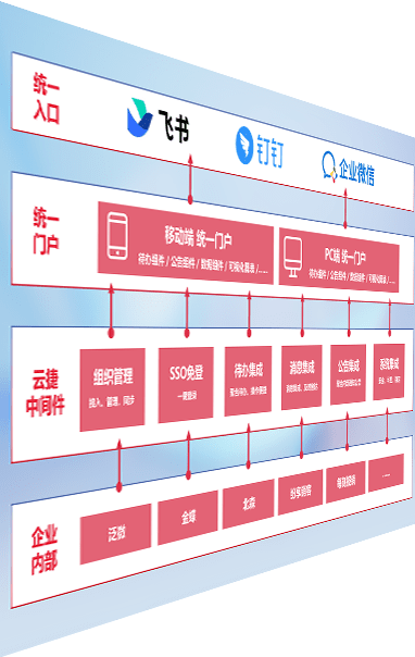 对协作平台提供支持服务,,,支持企业应用与协作平台对接,,,,包含组织同步、、、消息集成、、、、待办集成等。。。支持目前主流的协作平台:钉钉、、企微和飞书。。。。